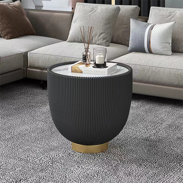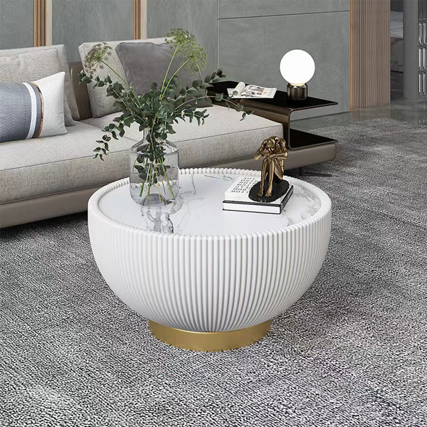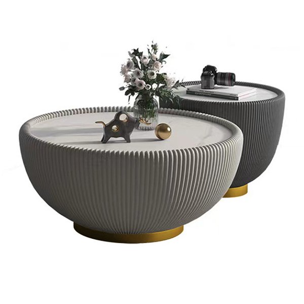 Modern light luxury round rock board tea table, living room creative simple size tea table combination rock board tea table.