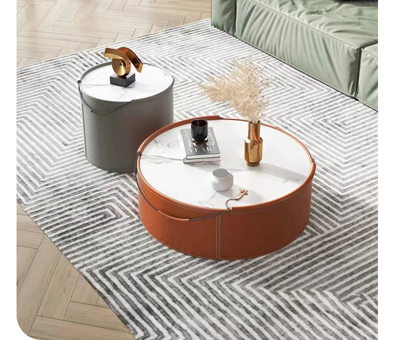 Nordic light luxury, rock plate high and low coffee table combination, small apartment, living room home, circular creative, small coffee table combination.