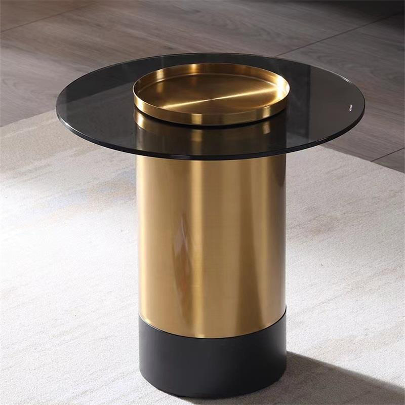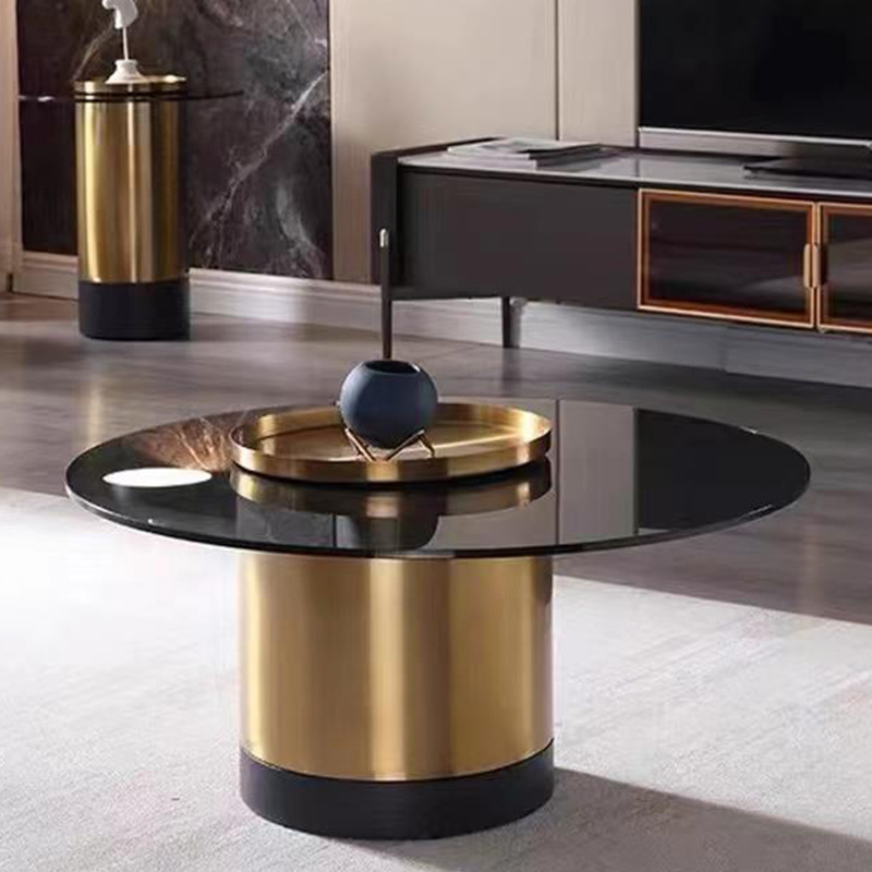 Small apartment, tempered glass round coffee table combination, modern simple, light luxury, metal wind, creative living room, guest coffee table.